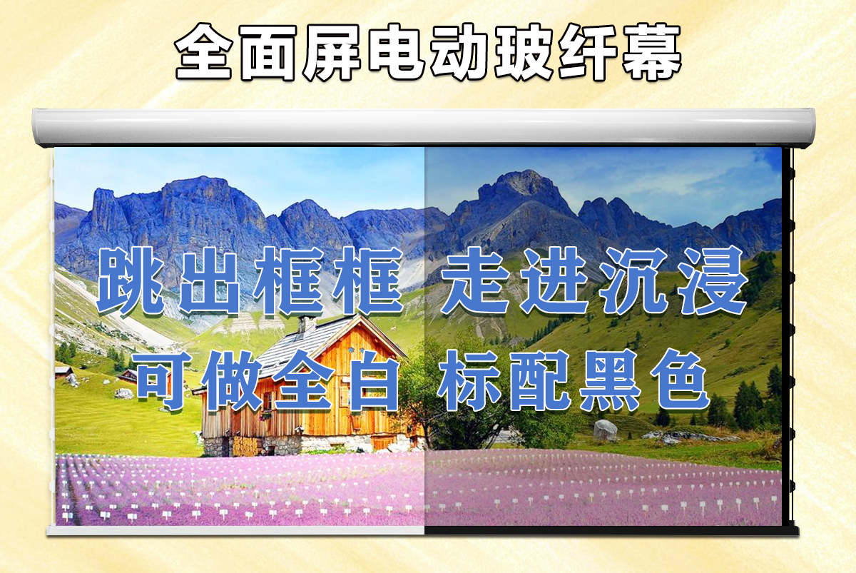 新一代进口高清玻纤幕,采用玻璃纤维作底布取代传统白塑针织底布,玻璃纤维(简称玻纤)在寒冷及炎热天气有着平整作用,在显像方面以玻纤作为底层,使用高科技pvc面涂层画面更卓越。
