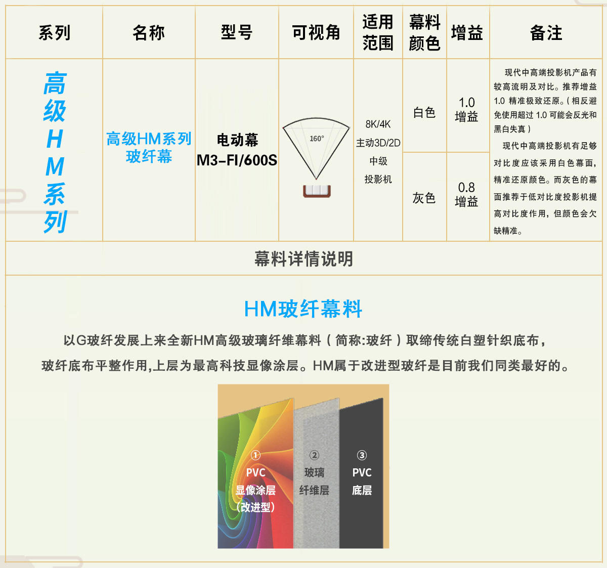 (定制款)M3-FI/600S 高清HM玻纤软幕 高清HM玻纤灰幕
