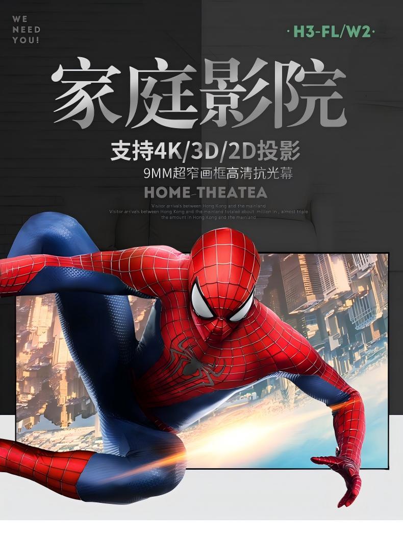 HM系列(长焦抗光软幕):长焦抗光幕只适用于长焦投影机。特点在有环境光的情况下推荐使用。特点在有环境光的情况下推荐使用。(相反在关灯下高级电影房,追求极致画质的不推荐使用。)适用例如有环境光客厅。特别适合商教会议厅场所是绝配。