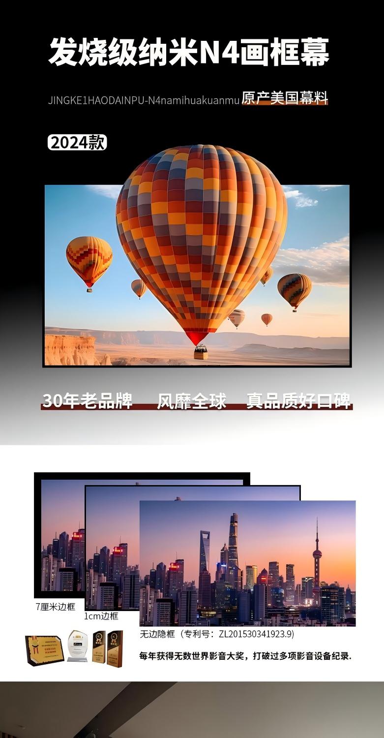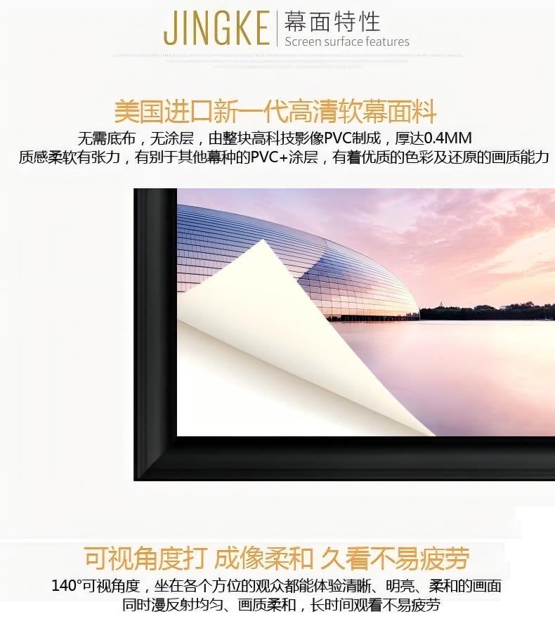 HM高增益复合软幕料:以软幕为基础确保了优秀画质,中层为珍珠涂层有效提高增益到1.5。表层还涂有不反光复合层,确保色彩鲜艳而不反光,这是克服目前市面其他高增益幕会反光的缺点。