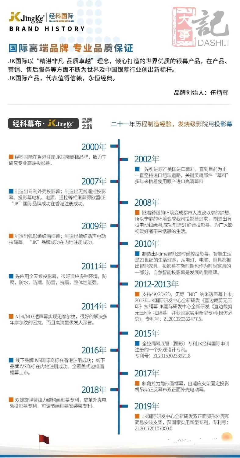 JK高速“管状电机”经过二十年发展历史证实普遍耐用20年之久,实现高速收放投影幕、节省时间。比一般同步电机快1.5倍。