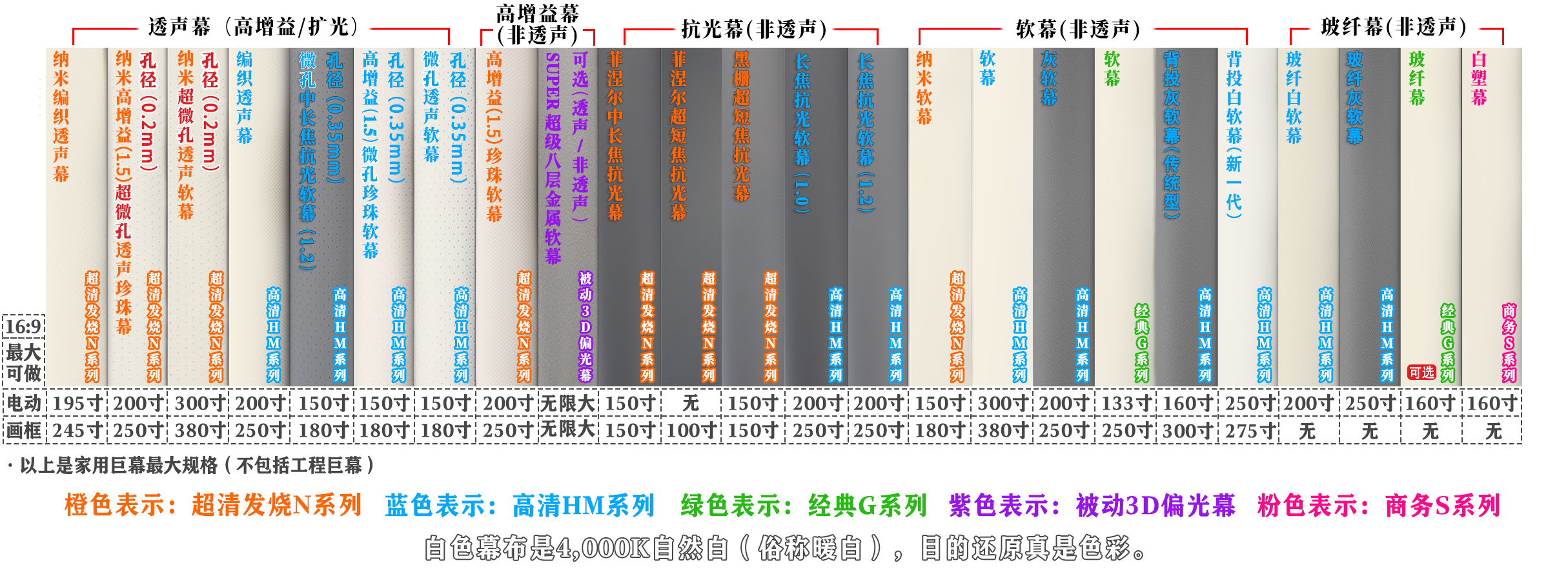 投影幕料:高清G玻纤幕(定制款)