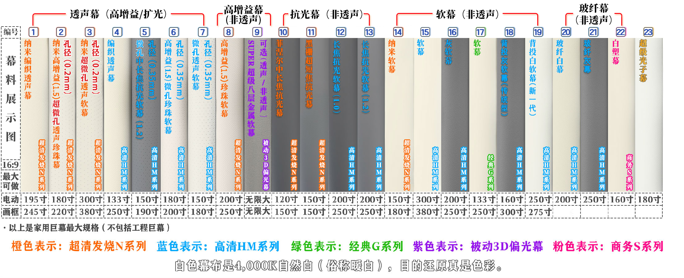 JK投影幕尺寸表